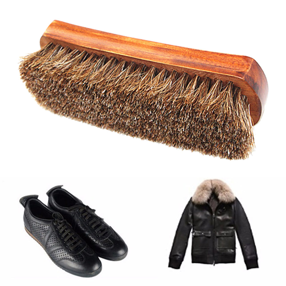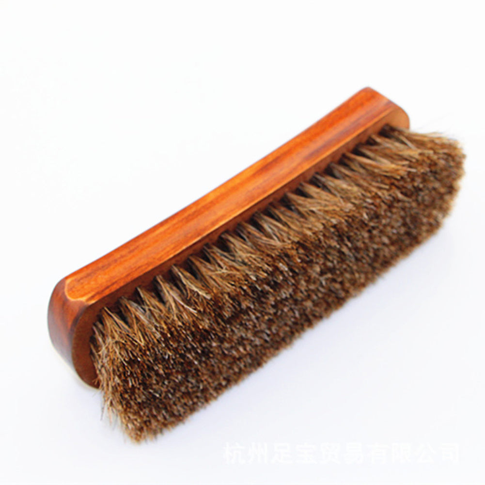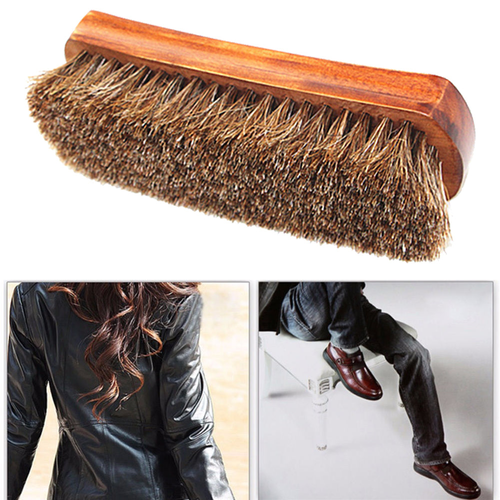 Wooden Horse Hair Mane Bristle Leather Shoes Care Brush Polishing Cleaning Tool