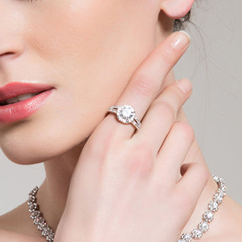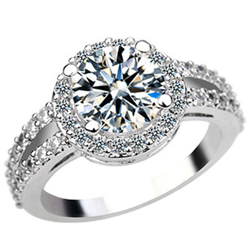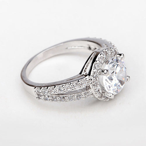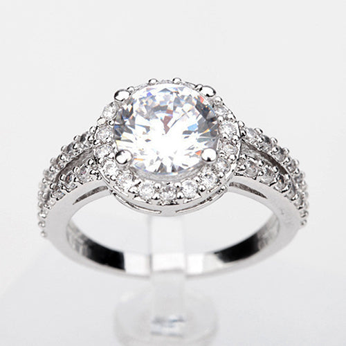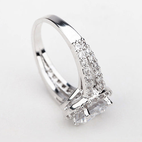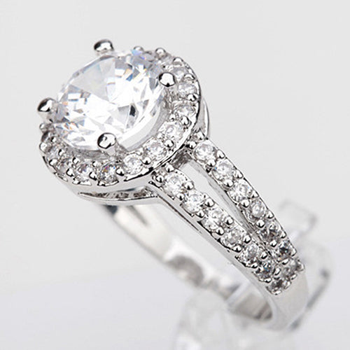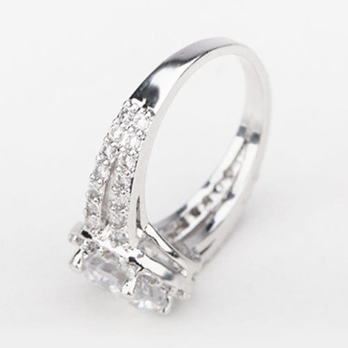 Zirconia Gem Inlaid Silver Plated Ring Luxury Wedding Party Gift Finger Jewelry